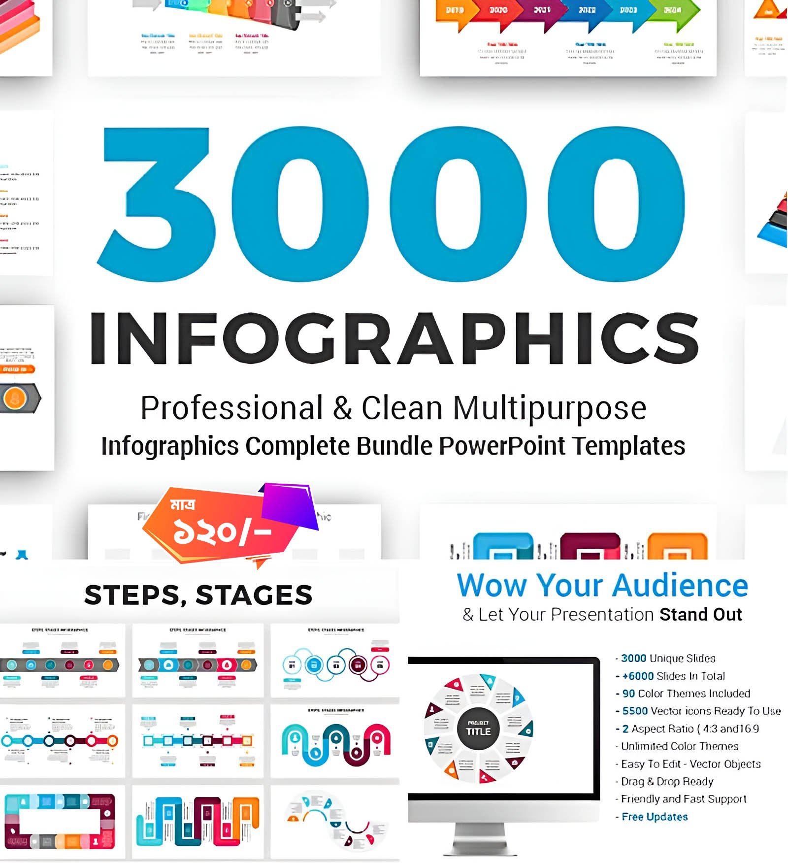 Set of 3000 infographic templates. You don’t need to be a pro to customize infographics. All elements are super easy to edit in Powerpoint, Keynote, GoogleSlides, Photoshop or Illustrator. Infographic elements contain: Illustration, Circle diagrams, timelines, charts, arrows, geometric figures, maps, puzzle, banners, lettering, linear graphics, Business graphs etc. For personal use.