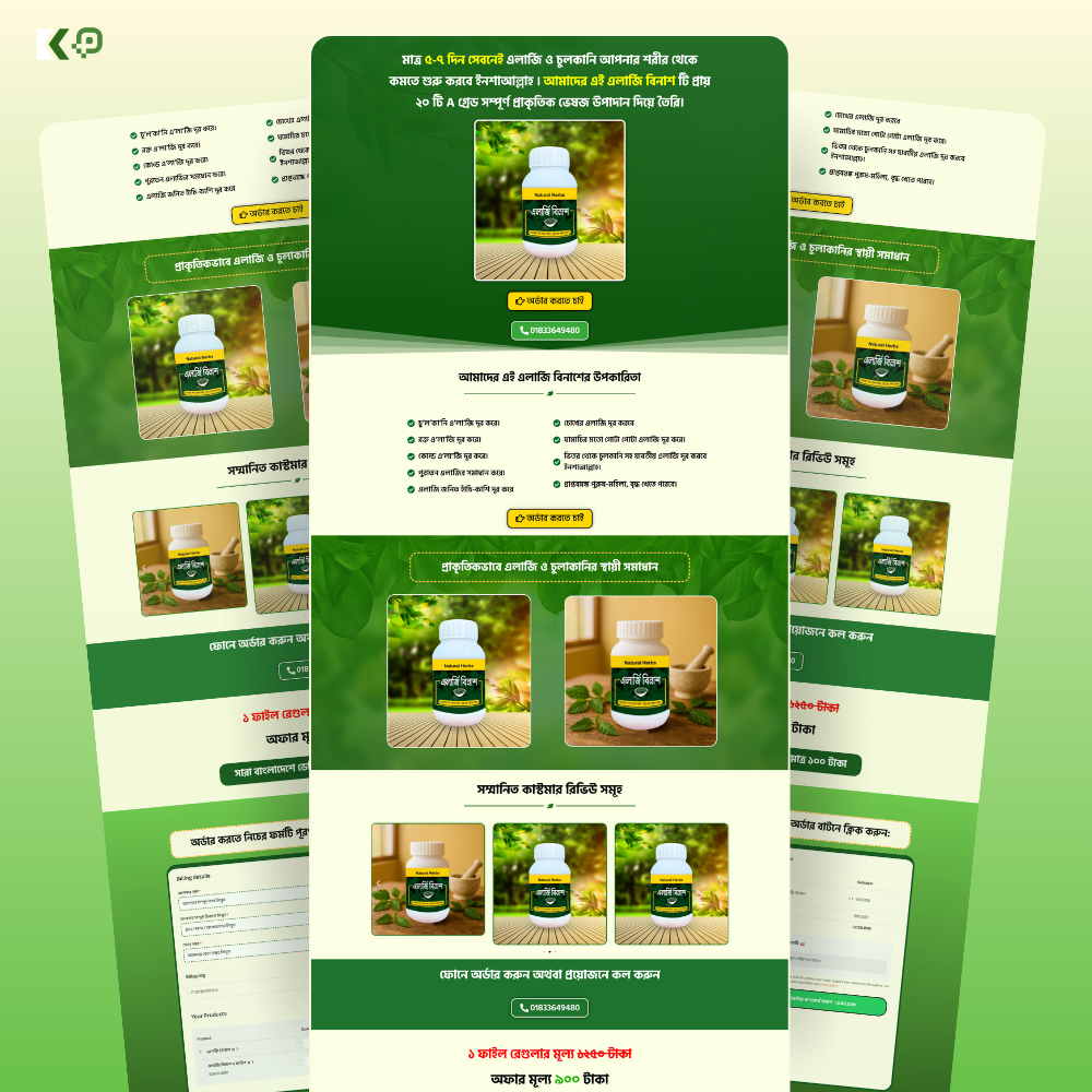 High-converting natural cares landing page design file with a sleek UI, product-focused layout, and sales-optimized sections.