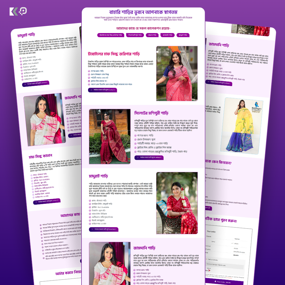 High-converting Sari Selling landing page design file with a sleek UI, product-focused layout, and sales-optimized sections.