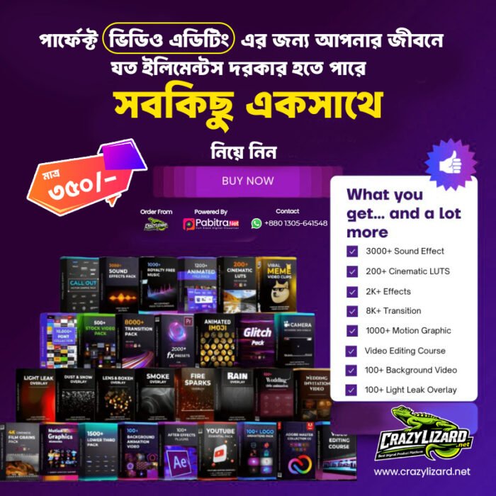 আপনার ভিডিও এডিটিংয়ে সময় বাঁচিয়ে তা সহজ ও দূর্দান্ত করতে প্রয়োজনীয় সব রকম এসেট পাবেন আমাদের কাছে।